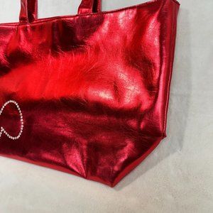 Disney Parks Red Metallic Mickey Huge 20" Vegan Leather Tote with Rhinestones