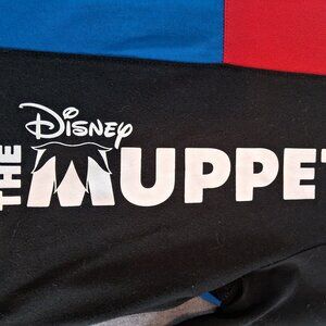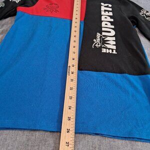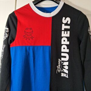 Disney Parks The Muppets unisex long-sleeved sweatshirt featuring red, black, and blue color blocks and multiple character prints.