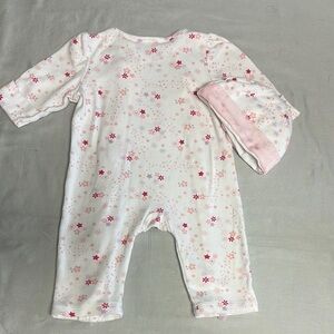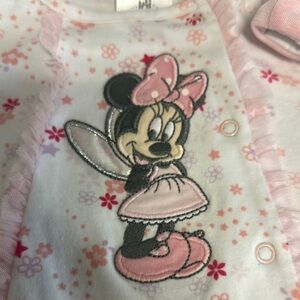 Disney Pink and White Minnie Mouse Jumpsuit with Floral Design and matching hat