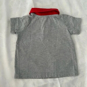 In very good, clean condition. Collared with three front buttons. Graphic is in amazing condition. Heathered grey with red trim.