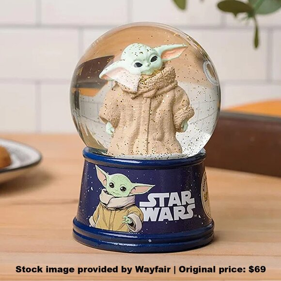 This adorably precious Star Wars snow globe features Grogu, aka The Child from the Mandalorian, inside a glitter-filled glass dome on top of a ceramic base.
