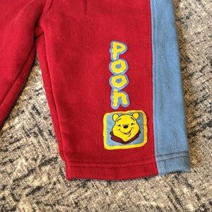 These vibrant Disney Pooh kids bottoms feature a playful red and blue design, perfect for adding a splash of color to your child's wardrobe. Comfortable and stylish, they are ideal for everyday wear. Size 6 months. Vintage Pooh bear vibes.