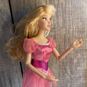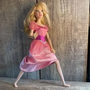 Disney Princess with pink dress. Does not come with pink belt as shown in picture. Articulating arms and bendable legs. Good condition. Clean. Prone to flights of fancy.