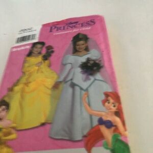 Simplicity pattern for Disney Princess costumes. Features Belle and Ariel designs. Perfect for crafting magical outfits.