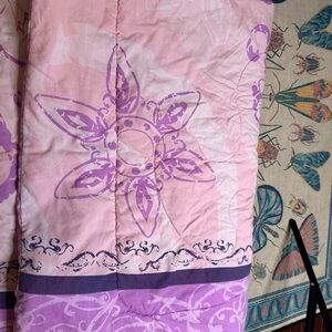 Experience the magic of Disney with this enchanting comforter, showcasing a delightful blend of pink and blue hues. The whimsical designs and animated character prints add a touch of fantasy to your bedroom decor. Crafted for comfort and style, this bedding piece is a perfect addition to any Disney fan's collection. There are a few marks that are shown in the photos, but otherwise great condition !