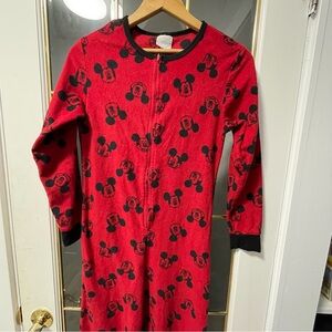 Adorable red footie pajamas with Mickey Mouse design. Perfect for cozy nights.