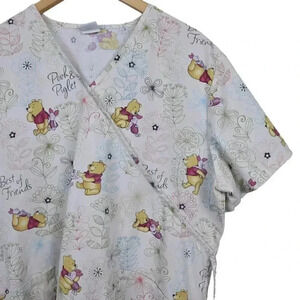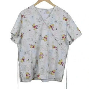 Disney Scrub Top Winnie the Pooh Bear Piglet Medical Cream Size XL