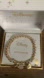 Charming gold tone stretch beaded bracelet in fine silver plating, with a rhinestone Minnie Mouse, a bow and love charms. Sparkling design for Disney fans of all ages. New in box.
