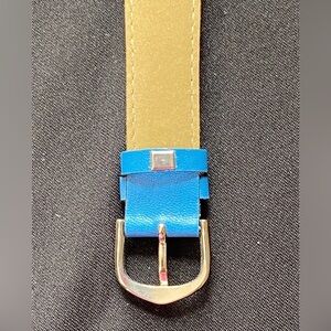 The blue bird is the second hand and rotates around Snow White. Blue genuine leather band with silver tone buckle.