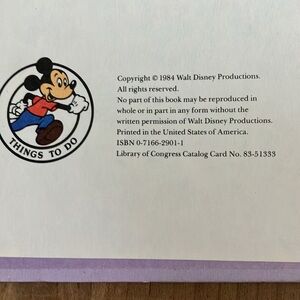 Fair used condition due to some wear / tear / discoloration / coloring on back inside cover page as shown in photos. Great for Disney / Mickey Mouse / Morty/ Ferdie / jiminy cricket /pluto fans , games , crafts inside. Vintage 1984 edition