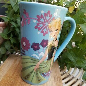 Disney Store Frozen Elsa Snowflake Tall Latte Mug Ceramic Coffee Cup