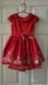 Stunning red holiday party dress with sparkly glittery gold accents. This dress is exquisite. Features large red and gold layered bow at waist. A zip-up back, layered mesh underskirt with satin trim and gold glitter ✨️.