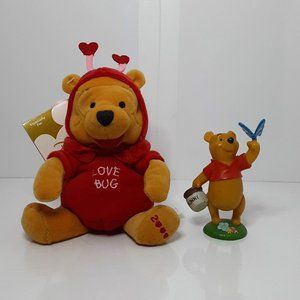 Vintage 2000 Love Bug Pooh Plush 6" NWT and previously loved 4" Figure.
