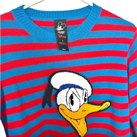 Stay cozy and stylish with this Disney striped sweater featuring a playful design. Perfect for adding a pop of color to your wardrobe.