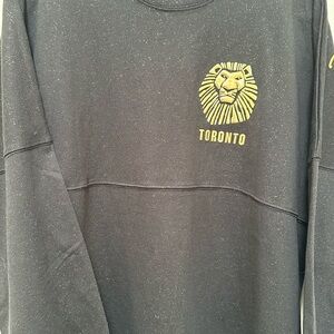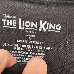 This glittering black long-sleeve shirt features a raised gold metallic Mufasa logo on the front left chest, with a puff ink The Lion King logo on the back shoulder. 100% Cotton. Size Adult XL and Oversized fit. Purchased in 2024 from the show in Toronto and has never been worn. In excellent condition and is like new.