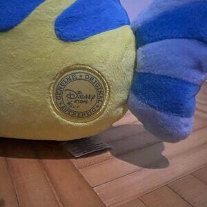 This charming plush captures the essence of Flounder, the endearing tropical fish character known for his adventurous spirit and vibrant personality.