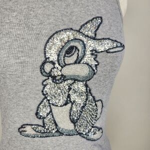 Disney Thumper Rabbit Beaded Sequin Grey Tank Top Bambi Theme Bunny Size XS
