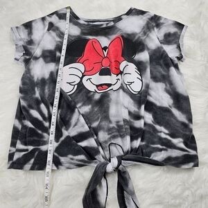 Adorable t-shirt with Mini Mouse graphic on the front by Disney. The shirt is black and white tie dye with a tie up front. Size XL