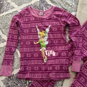 Disneys Tinker Bell thermal Pyjamas. Dark and light pink/purple with snowflake design. Size Medium.