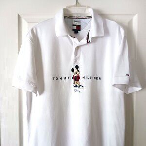 * The white polo is accented with the Tommy Hilfiger logo and Disney branding, creating a stylish harmony between fashion and fandom