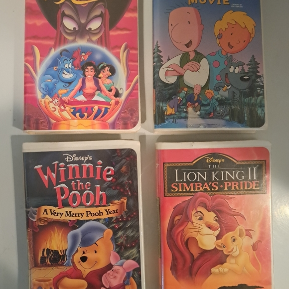 Walt Disney VHS Collection. The Return of Jafar, Doug's First 1st Movie, Winnie The Poo, A Very Merry Poo Year, Lion King 2 Simba's Pride.