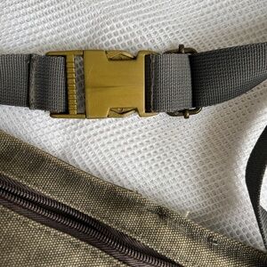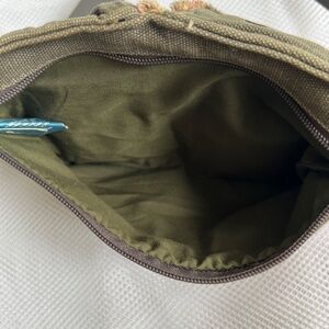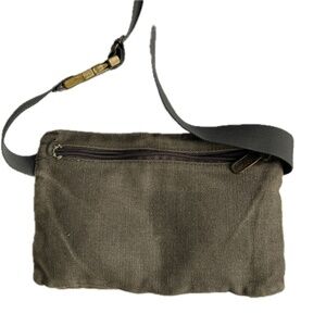 Disney Waist Bag Cotton Canvas Green Patchwork Mickey Back Zipper Travel RUZ