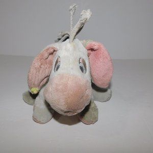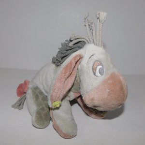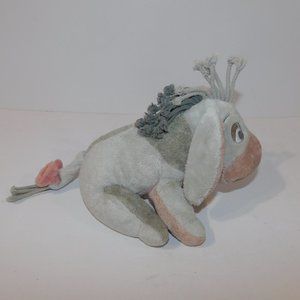 This Classic Disney Winnie the Pooh 8" Plush Gray EEYORE Donkey is in great clean condition with tush tag still attached but faded from age. Measures 8" From top of head to feet when sitting as in the pictures. Features Knitted Yellow Flower on one ear and braided rope mane.