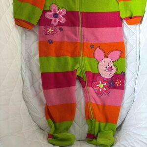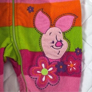 ⭒ Disney Winnie the Pooh Piglet Vibrant Fleece Striped Embroidered Onesie Zip ⭒