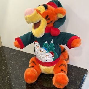 Disney Winnie the pooh Tiger Christmas snowman sweater plush . Condition: used good, no stains, no holes or rips 12.5" tall