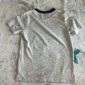 Features: short sleeve Carter's t-shirt with shark silkscreen on the front and shark tail on the side; Disney cotton pull on shorts with elastic waistband (decorative tie), and Disney "Toys Play" badge on the front.