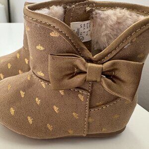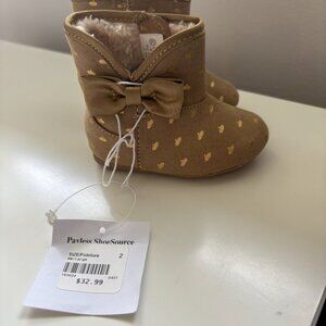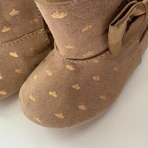 Disney princess baby boots Tan NWT Size 2 Gold Crowns Bows Payless Shoes
