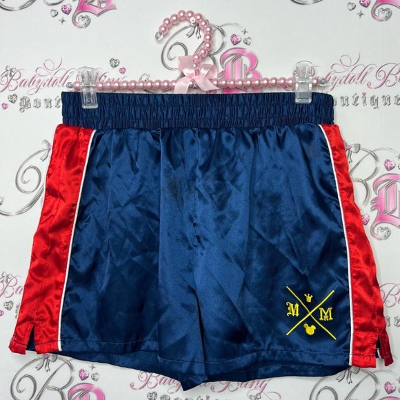 Disney shorts silky satin nautical Mickey mouse embroidery bottom leg slits. Size XS / S Unisex. Very rare unique shorts basketball style boxing style cute stretchy waist band. Silky satiny feel material shiny metallic πβ¨ Disney lover πͺπͺ these are Disney cast member shorts very unique collectors item! π±