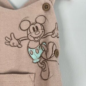 Disney x Primark knit style overalls celebrating Disney 100. Tan colour with Pooh & Mickey Mouse. Cross back straps.
