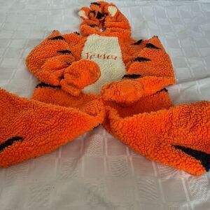 Adorable tigger-themed footie holloweencostume. Soft and cozy fabric. Perfect for imaginative play.