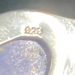 Two gold-flecked lapis lazuli cabochons are framed in gleaming silver in this 1-1/4 inch long piece. The wide bail will accommodate almost any chain or cord. Marked 925. In very nice condition, with some patina.