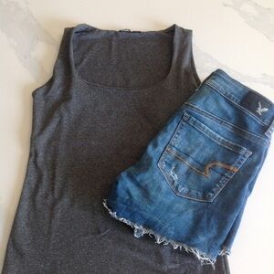 American eagle shorts size 2 super stretch and a grey Zara tank top size M. Great deal 2 items for the price of 1. Gently used.
