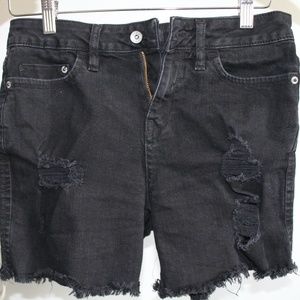 Distressed black denim shorts. Worn once or twice, like new. Perfect for an edgy, 90's inspired outfit!