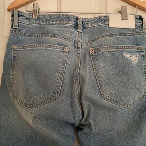 Distressed boyfriend jean by &Denim from H&M. Low waist, button fly. Size 26, approx. inseam is 27". SF/BF home.