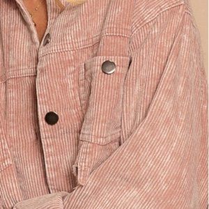 Distressed Corduroy Crop Denim Jacket- powder, Rose