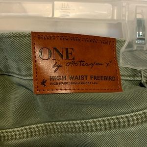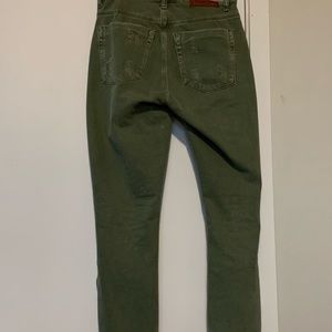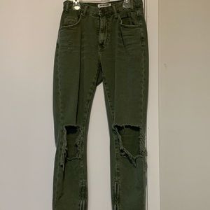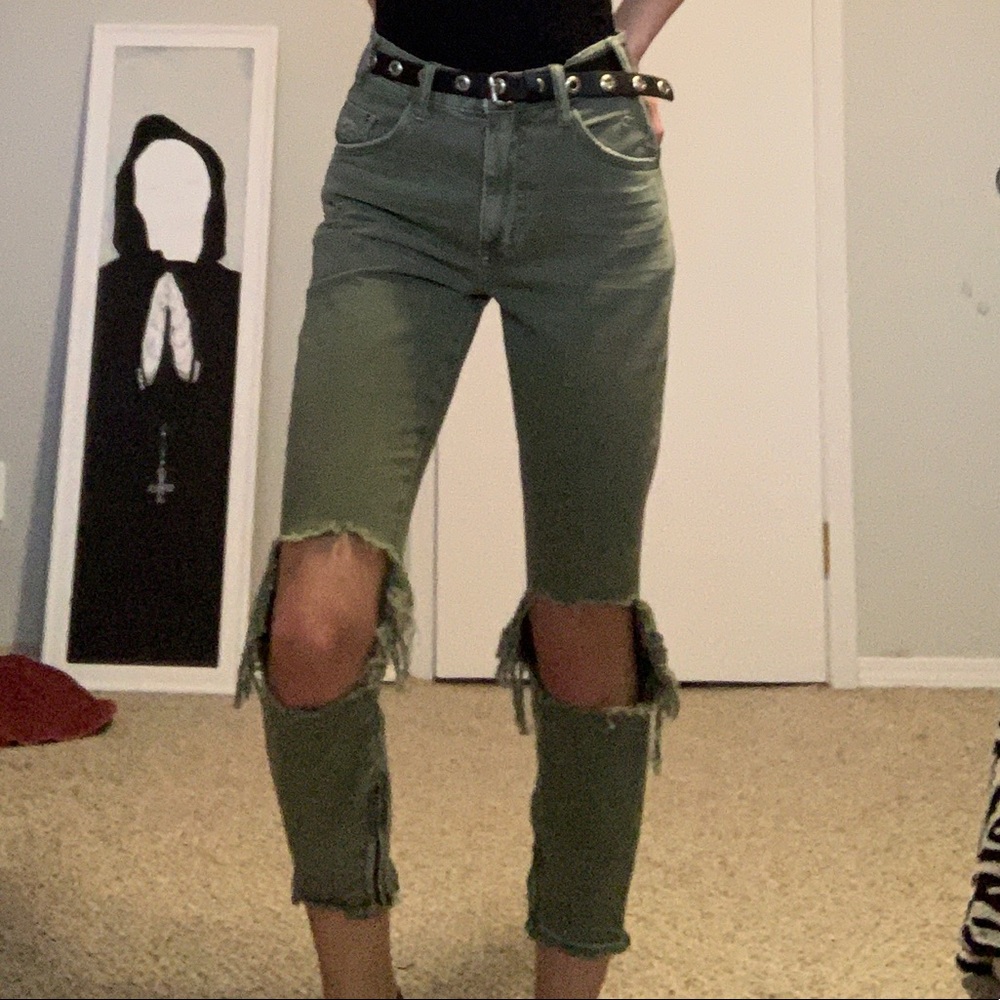 Amazing quality and only worn once! Zipper on inside of jeans pictures and high waisted! wouldn’t be so cropped on someone who has shorter legs but i wouldn’t recommend for anyone with inseam more than 31, as they may be tight on your legs but they can be stretched!