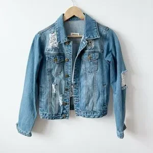 Brand new, never worn, too small on me. Mono B brand, purchased from local boutique. Distressing throughout jacket, soft denim and comfy fit. True womens size small. Please refer to photos for more information.