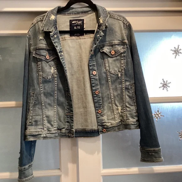 Silver Jeans Co. Distressed denim jacket - It has some nice give (stretch) to make it very comfortable.