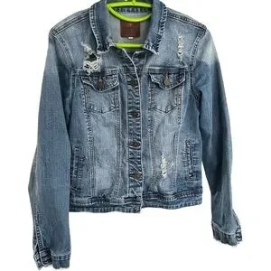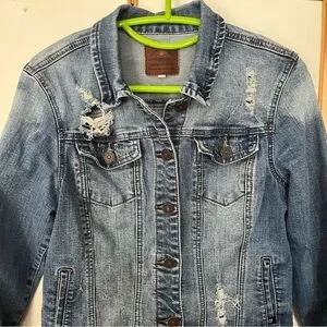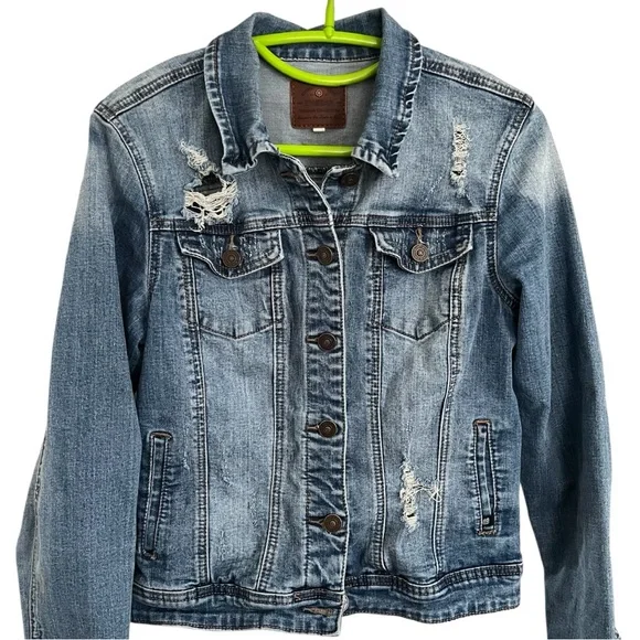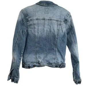 This trendy blue denim jacket is perfect. It features a classic design with a modern twist, making it a versatile addition to any wardrobe.
