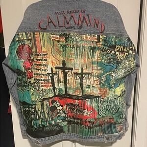 Stylish distressed denim jacket with a classic blue wash. Perfect for casual outings.