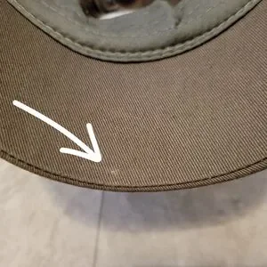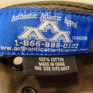 One size fits most. 100% Cotton. Very good condition, just one tiny little blemish on the underside of the peak (see photos!), but its barely noticeable. I received this as a gift, but it's not my style, so it's basically brand new, just kept in storage for a couple of years.