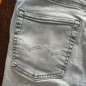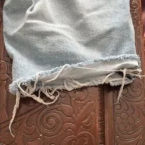 Stylish distressed denim shorts in light blue. Perfect for casual wear.