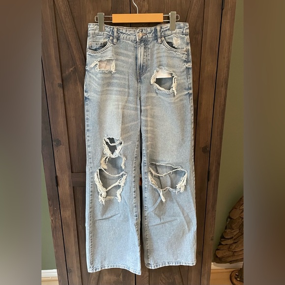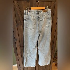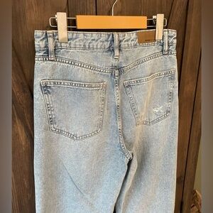Women's light blue jeans with distressed details. Relaxed boyfriend fit, wide leg. Ideal for casual wear. Size 2 / 26.