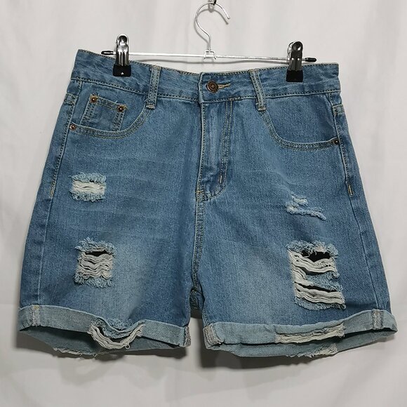 Distressed Light Wash Denim Shorts Size M NWOT #103