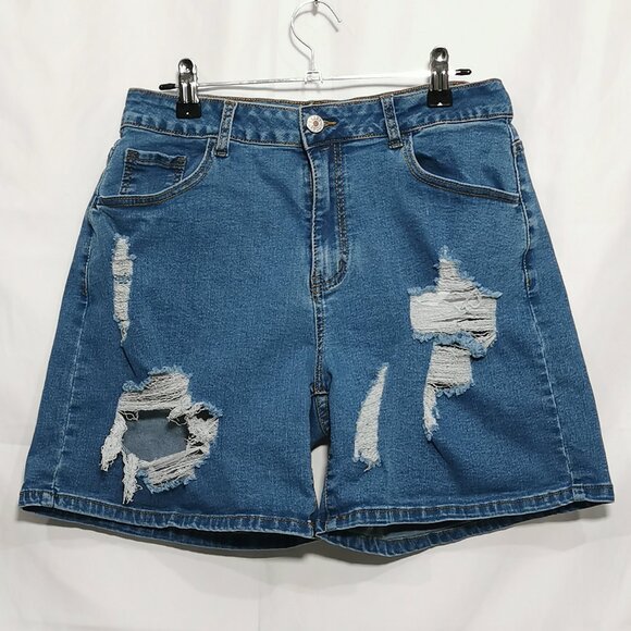 Distressed Medium Wash Denim Shorts Size M NWOT #104