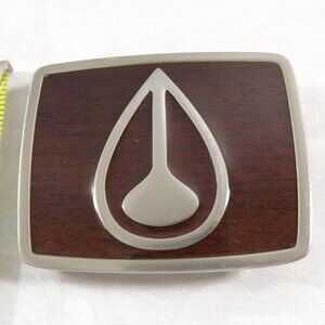 Distressed Nixon Belt Buckle, Brown Faux Wood Grain with Silver Tone Trim